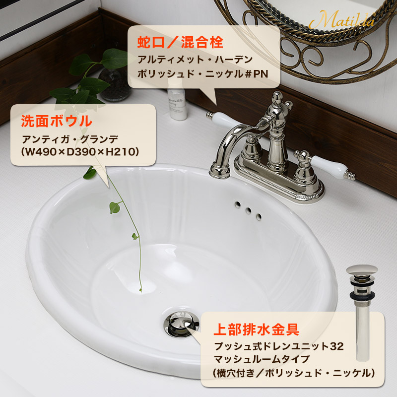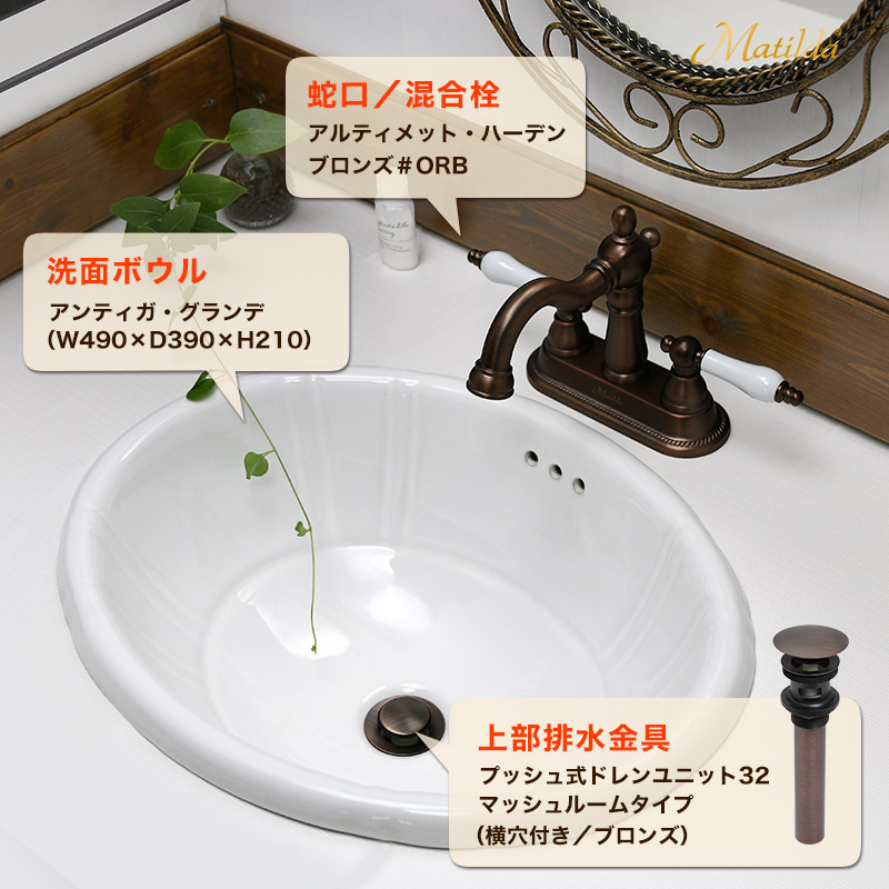 この商品は「蛇口・洗面ボウル・32mm規格上部排水ユニット」の3点セットです。