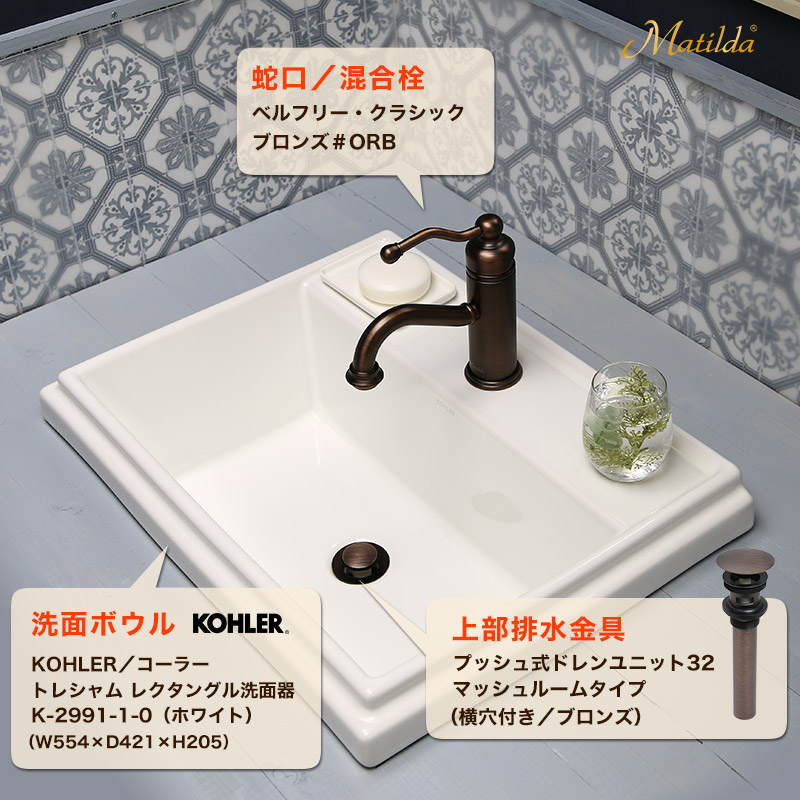 この商品は「蛇口・洗面ボウル・32mm規格上部排水ユニット」の3点セットです。