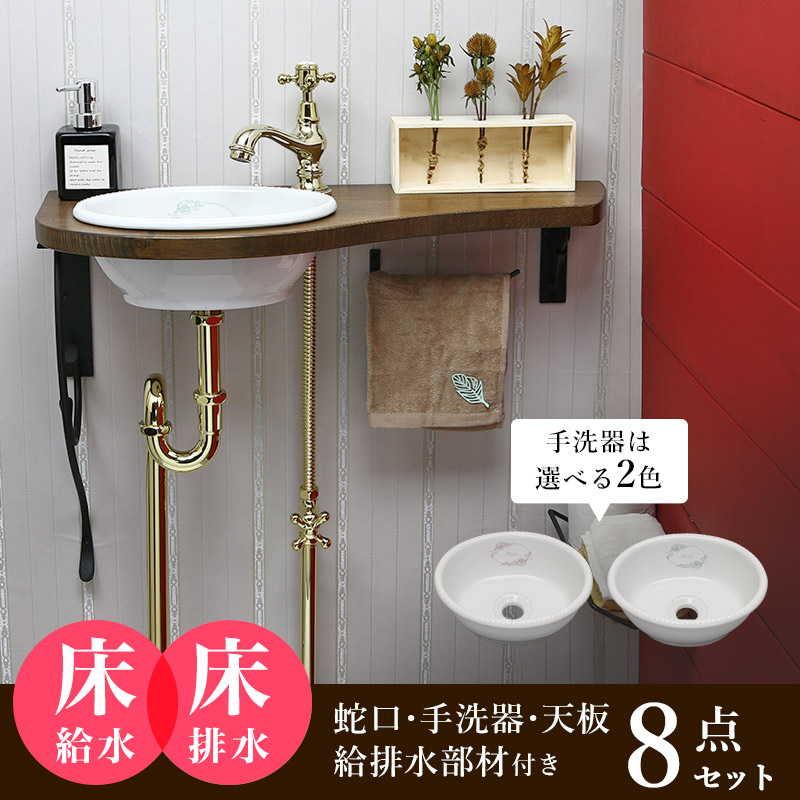 給排水部材・天板・アングルまで付いた手洗いカウンターフルセット。