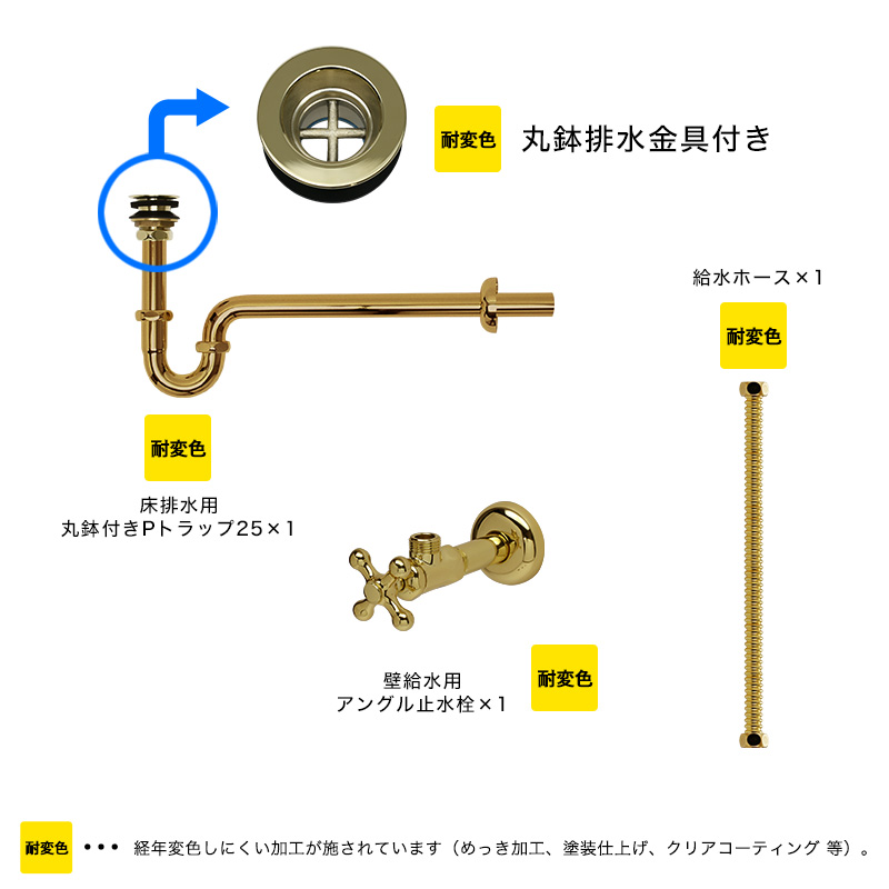 この商品は「壁給水(アングル止水栓)」「壁排水(Pトラップ)」です。