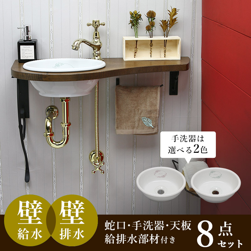 蛇口は2タイプ(陶器サインはCOLDまたはHOTから選択)、手洗器は2色、天板を支えるアングルも2種類の中から選べます。