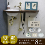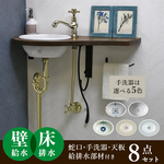 蛇口は2タイプ(陶器サインはCOLDまたはHOTから選択)、手洗器はレトロカントリーな雰囲気のあるエッセンスSオーバル5種から、天板を支えるアングルも2種類の中から選べます。