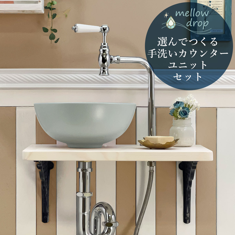 【mellow drop/メロウ・ドロップ】丸型手洗器(アッシュビーン)と選べる4種の単水栓 手洗い4点セット(プラスα)