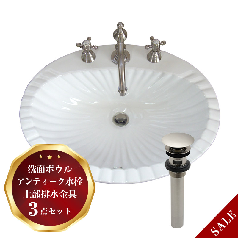 この商品は「蛇口・洗面ボウル・32mm規格上部排水金具」の3点セットです。