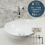 メロウドロップの楕円型洗面ボウル「おーばる」と、マチルダ水栓のアンティーク調単水栓「クリオネ」に、上部排水金具と天板固定金具が付属する手洗い4点セット。造作洗面台におすすめです!